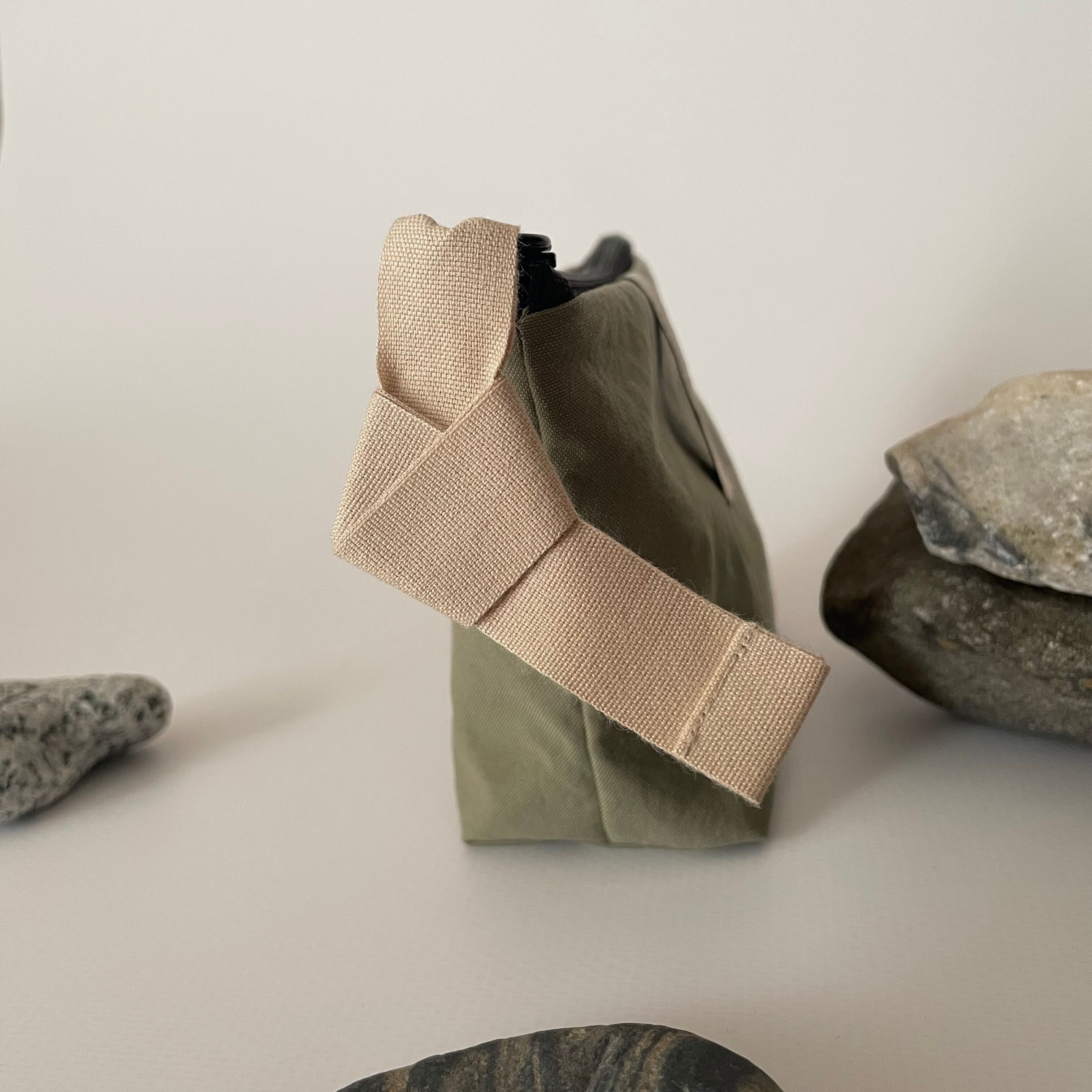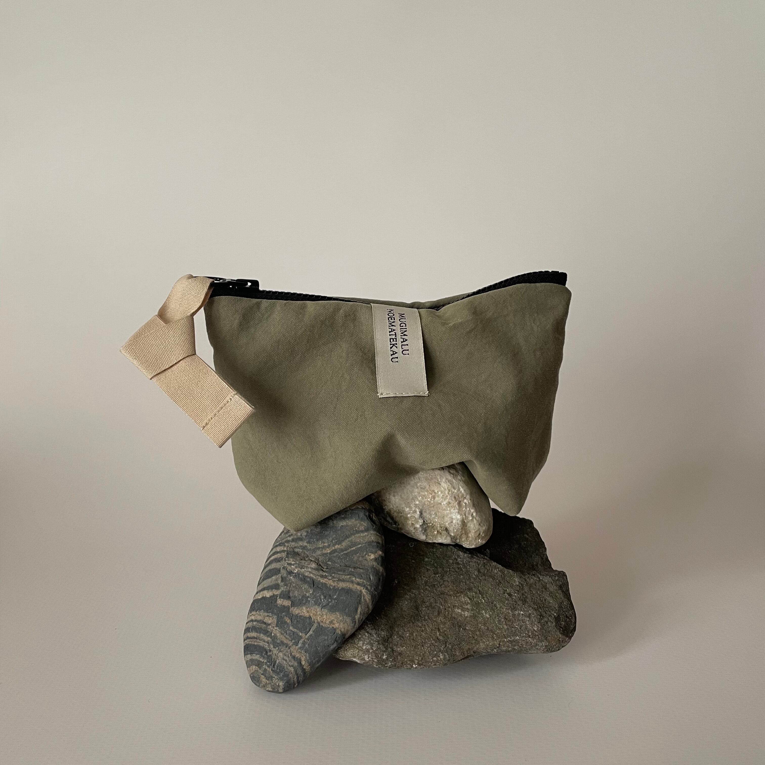 ファスナー持ち手部分にオーガニックコットンテープをつけております。