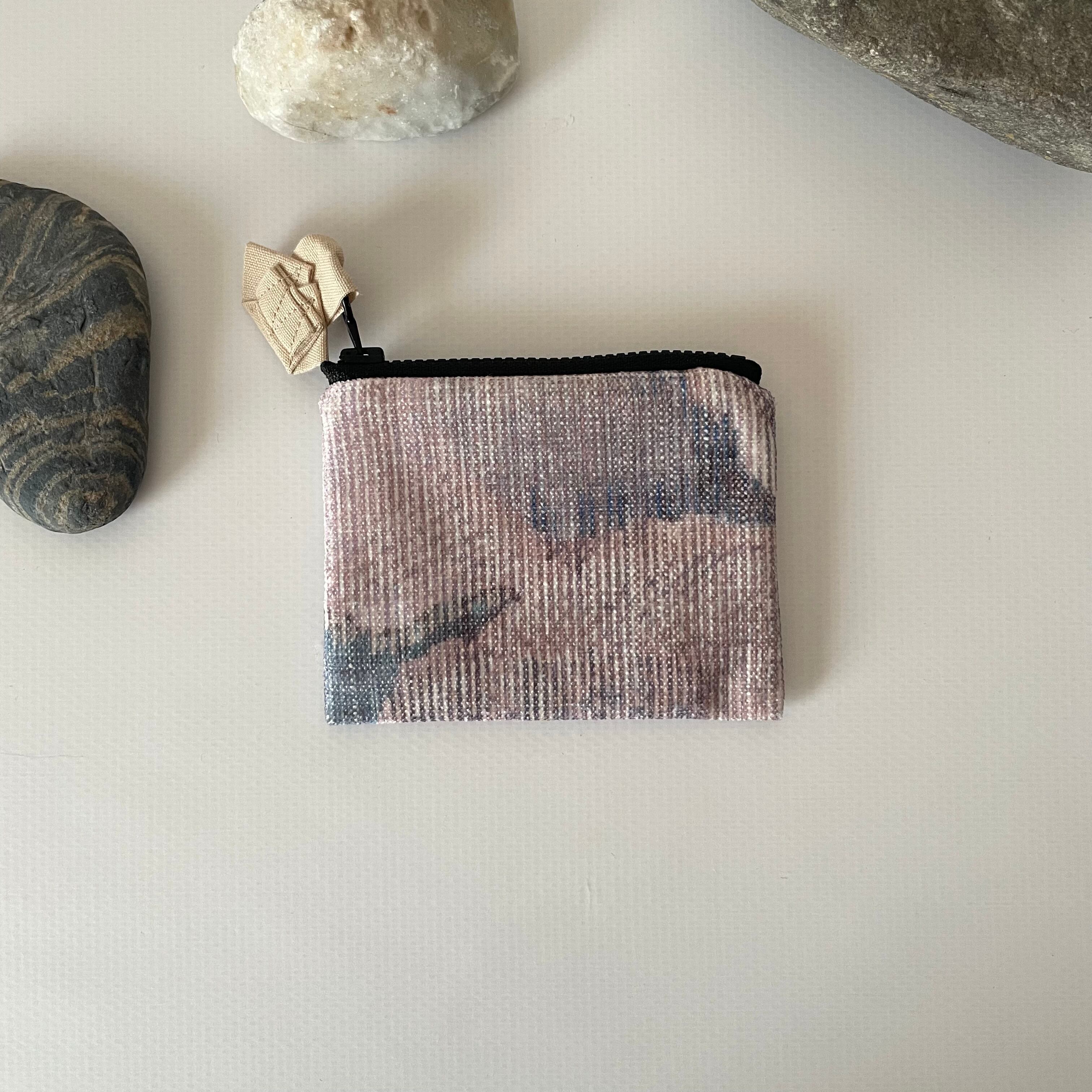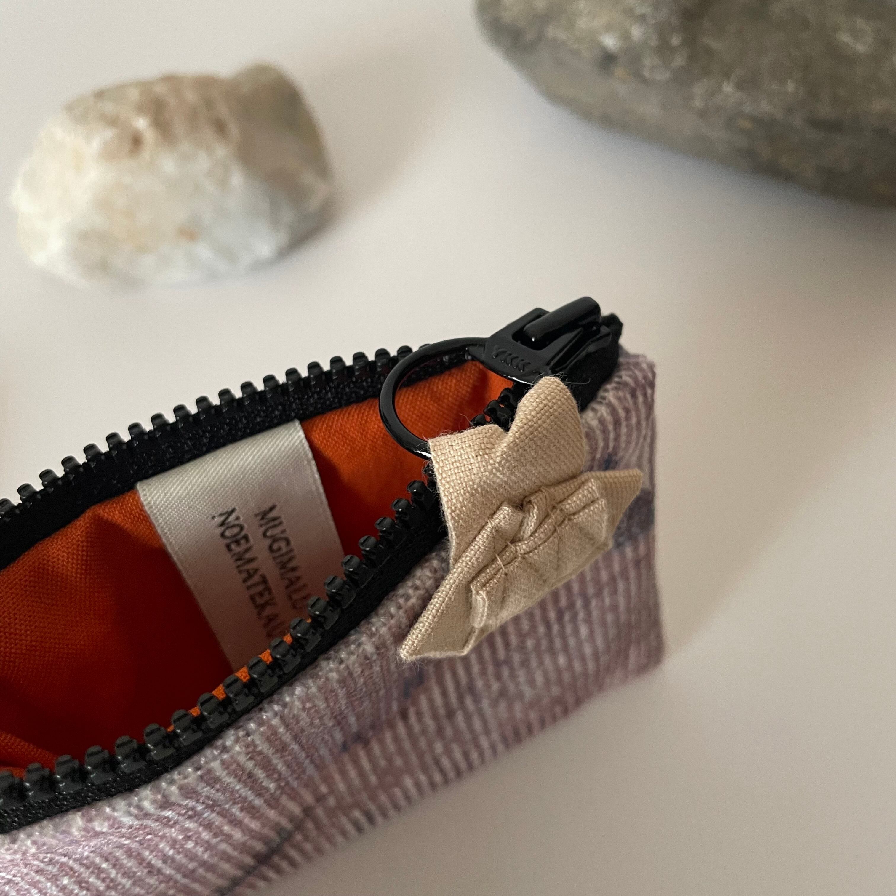 表にはイギリスPrestigiousTextiles社製の若干ベルベットのような毛並みのある、しなやかなジャガード生地を、内には天然色素染NYLONを使用したポーチです。