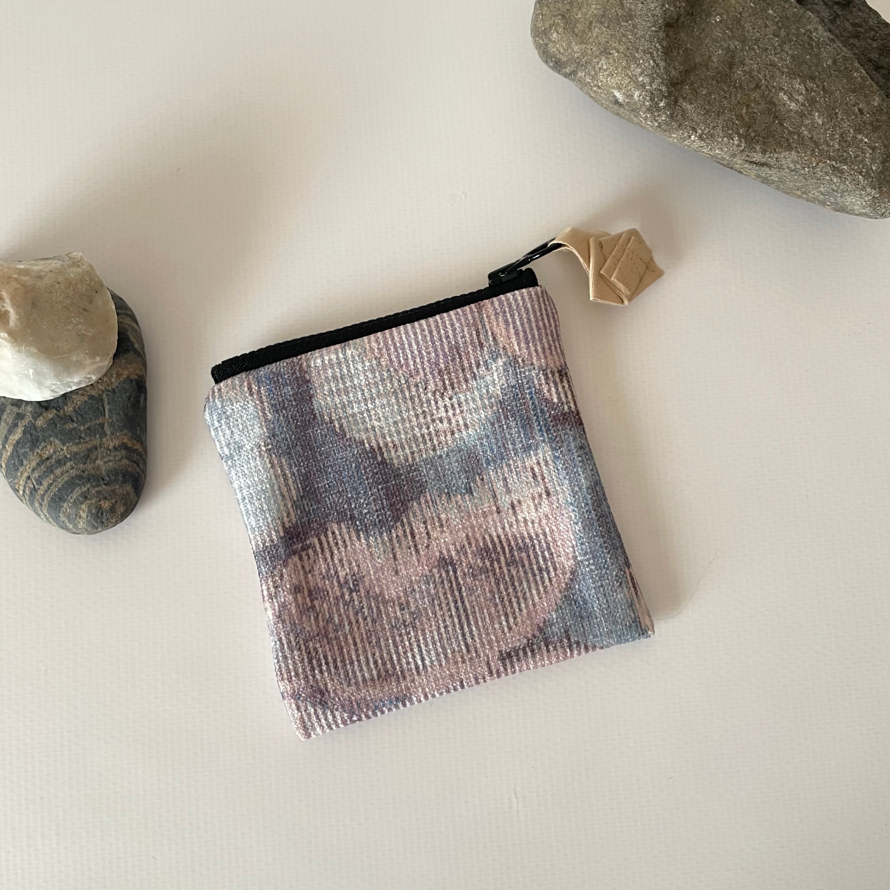 表にはイギリスPrestigiousTextiles社製の若干ベルベットのような毛並みのある、しなやかなジャガード生地を、内には天然色素染NYLONを使用したポーチです。