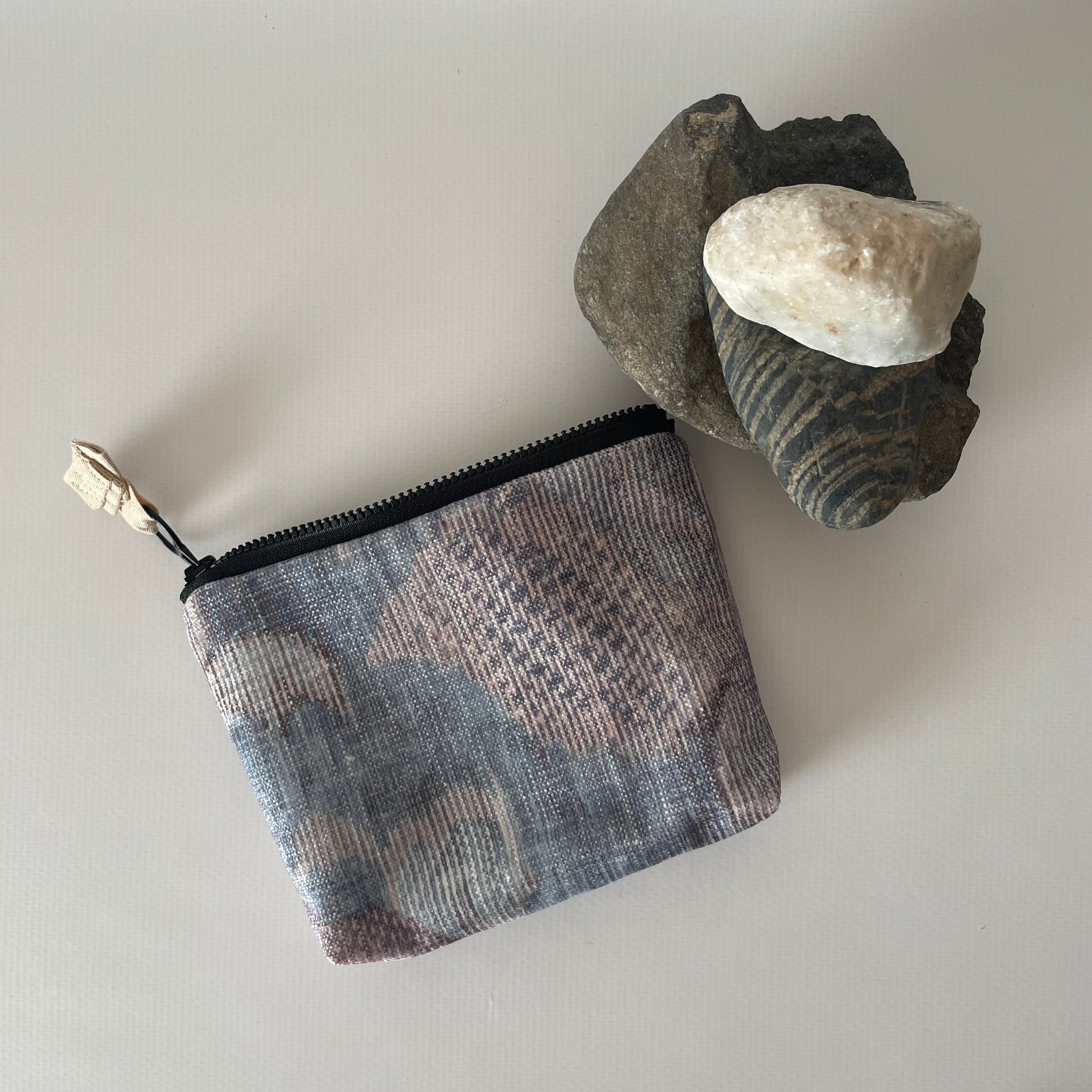 表にはイギリスPrestigiousTextiles社製の若干ベルベットのような毛並みのある、しなやかなジャガード生地を、内には天然色素染NYLONを使用したポーチです。